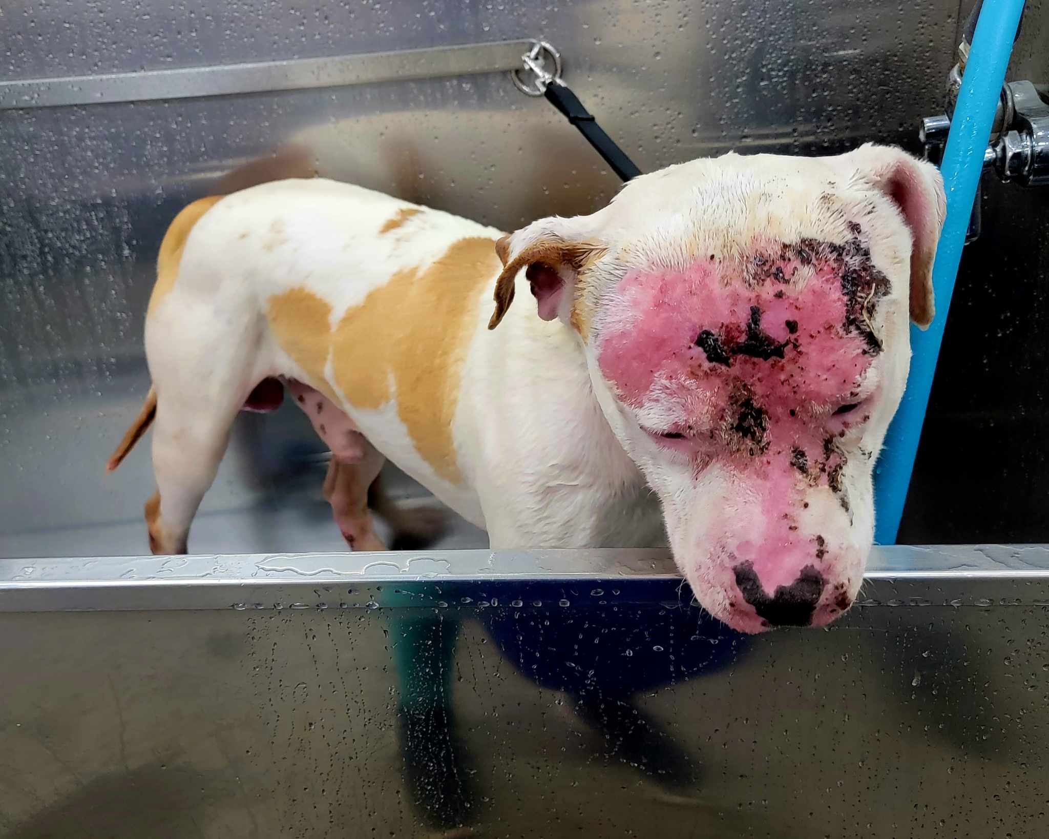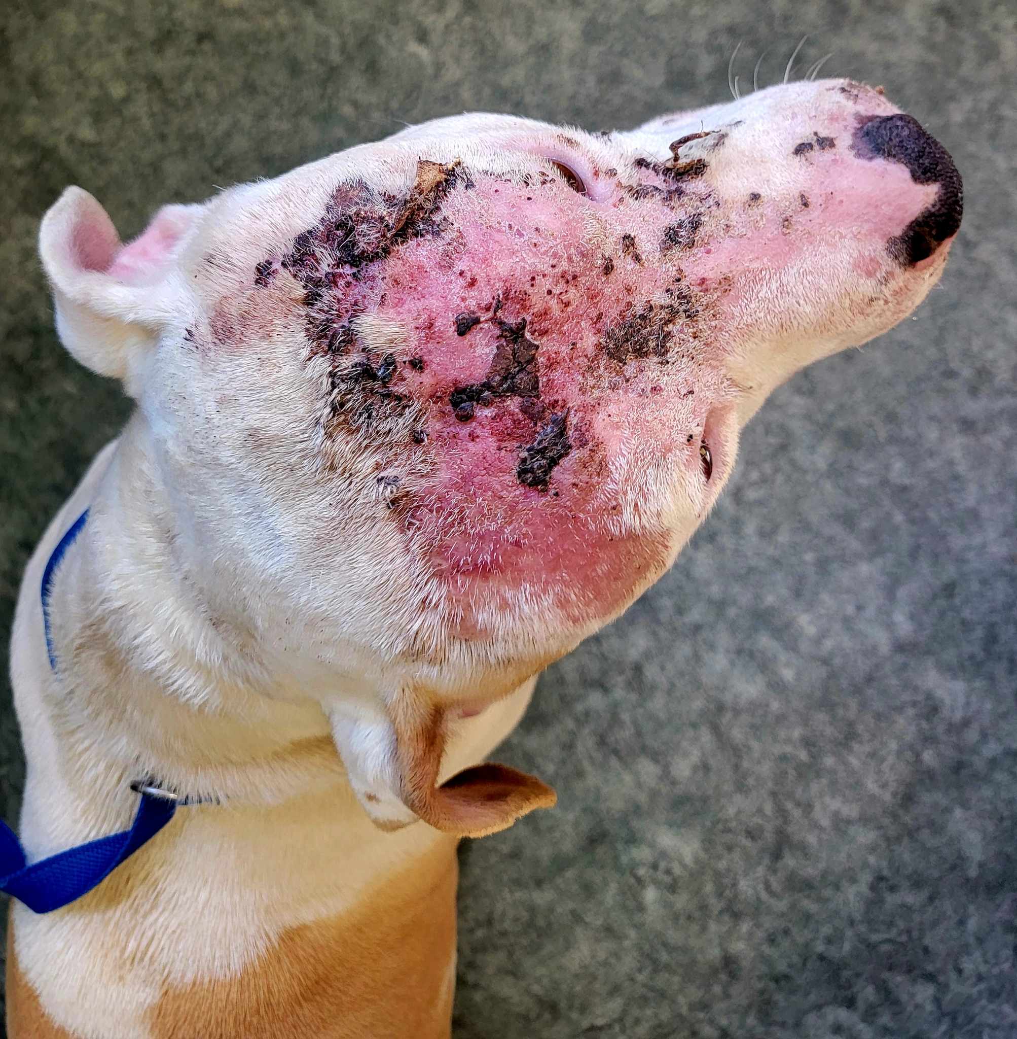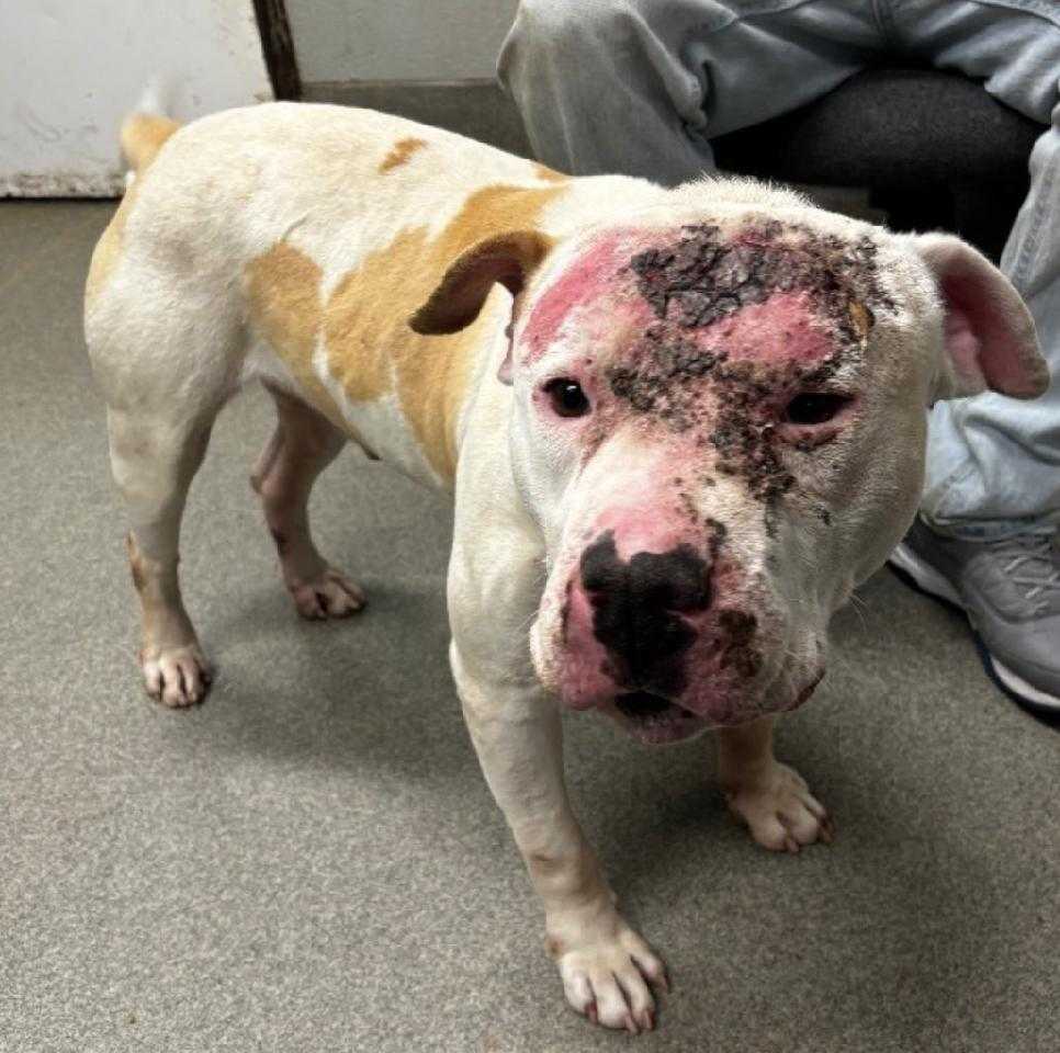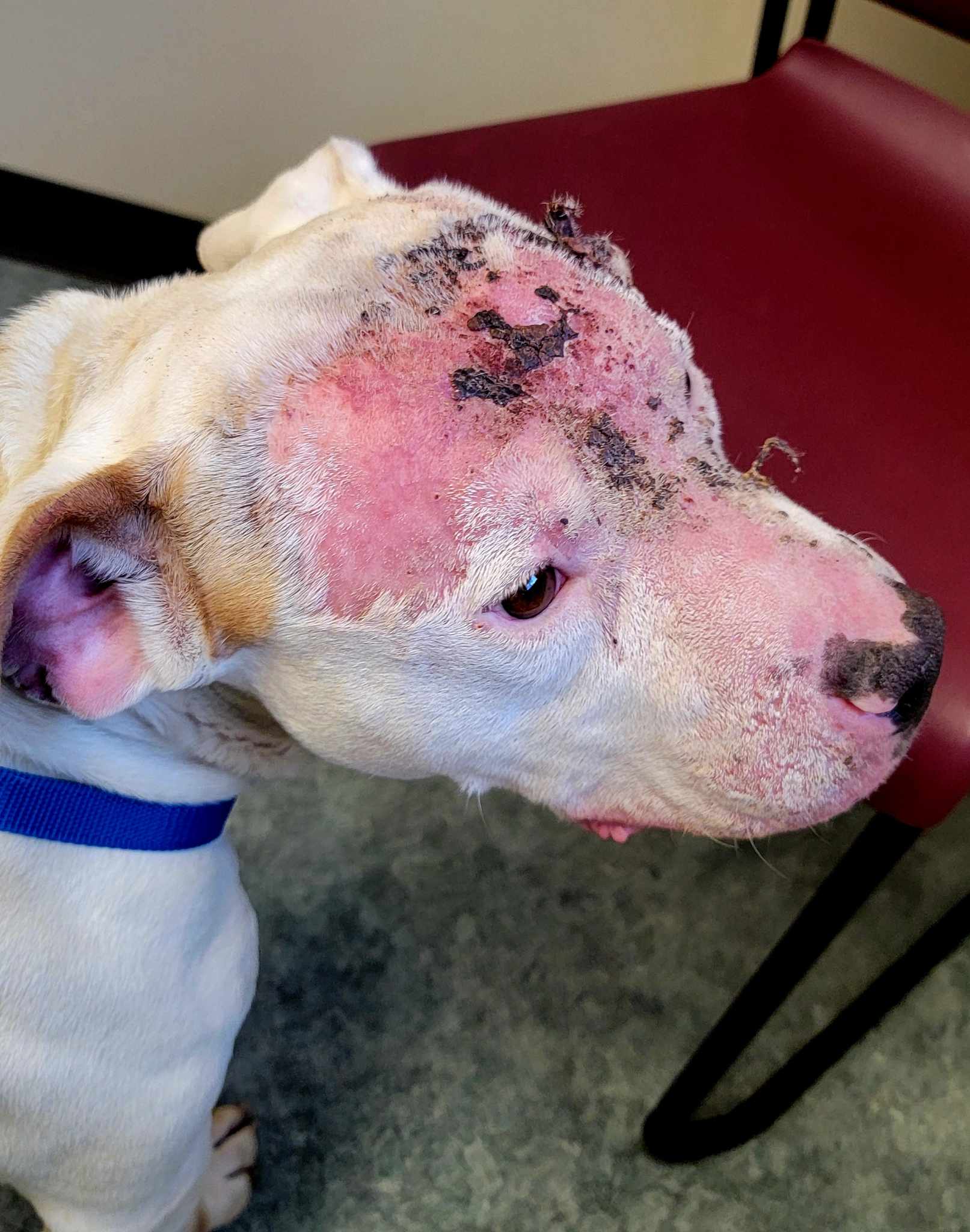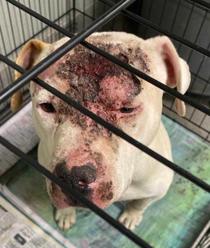 [adoption_info name=”Buzz Pawldrin” breed=”Pit Mix” gender=”Male” age=”5 years” weight=”65 pounds” color=”White w/Tan” house=”Yes” crate=”Yes” dogs=”Has done well” cats=”Unknown” kids=”Has done well” fence=”No”]
