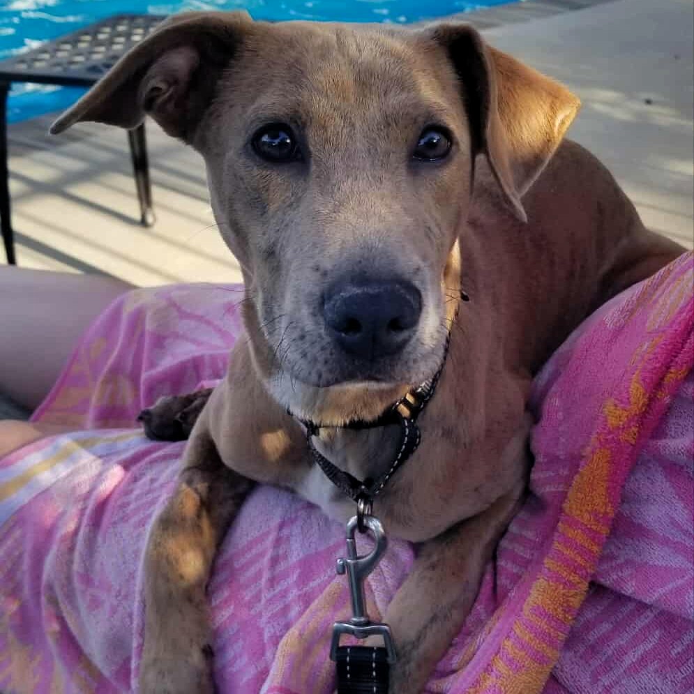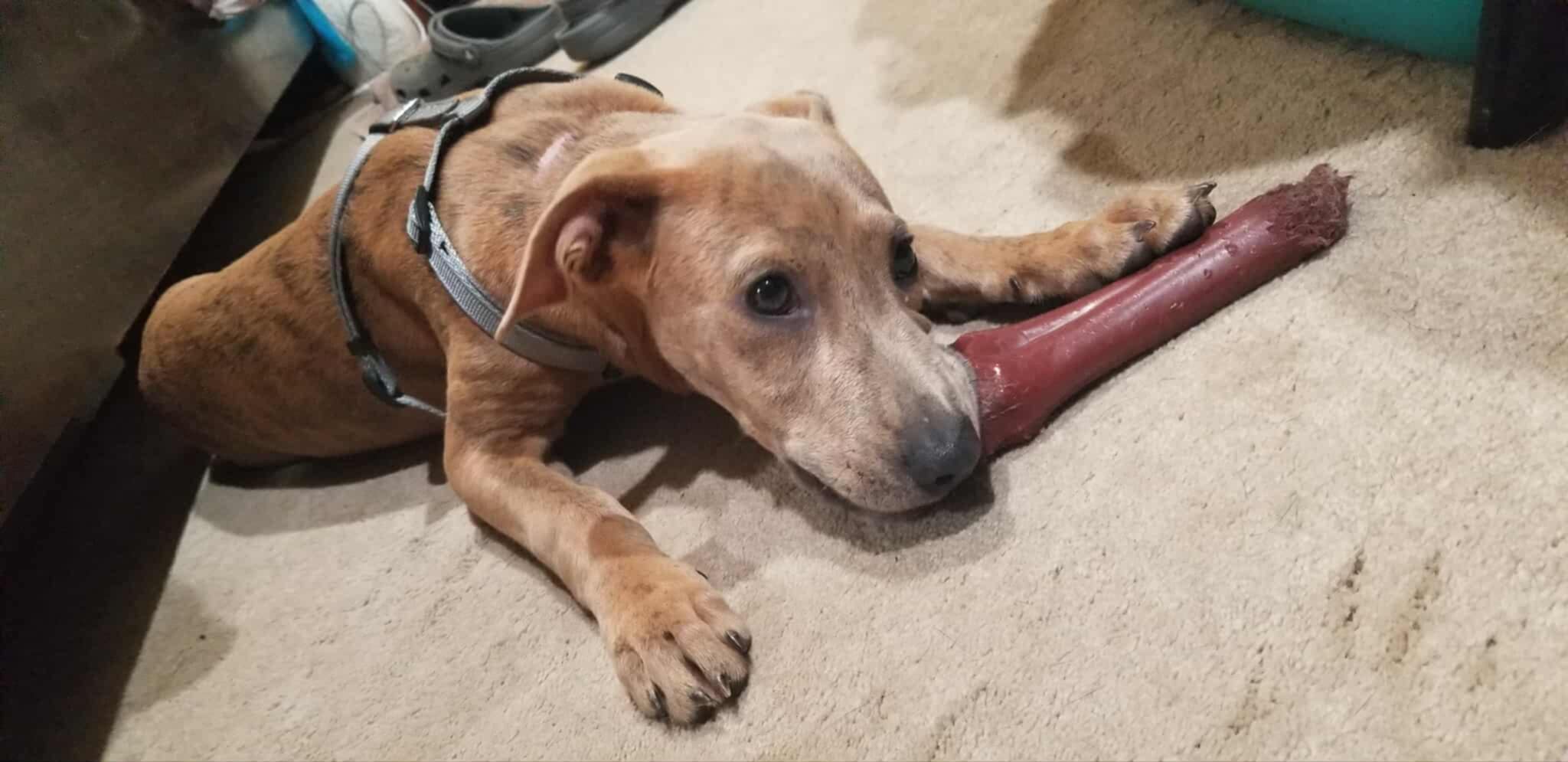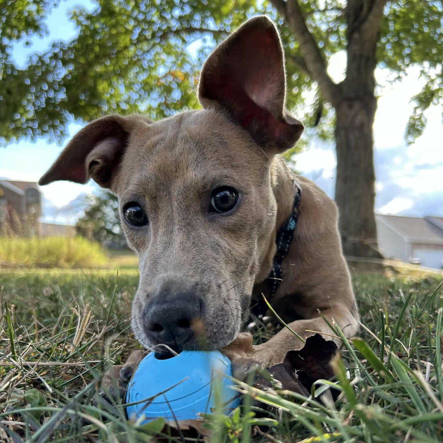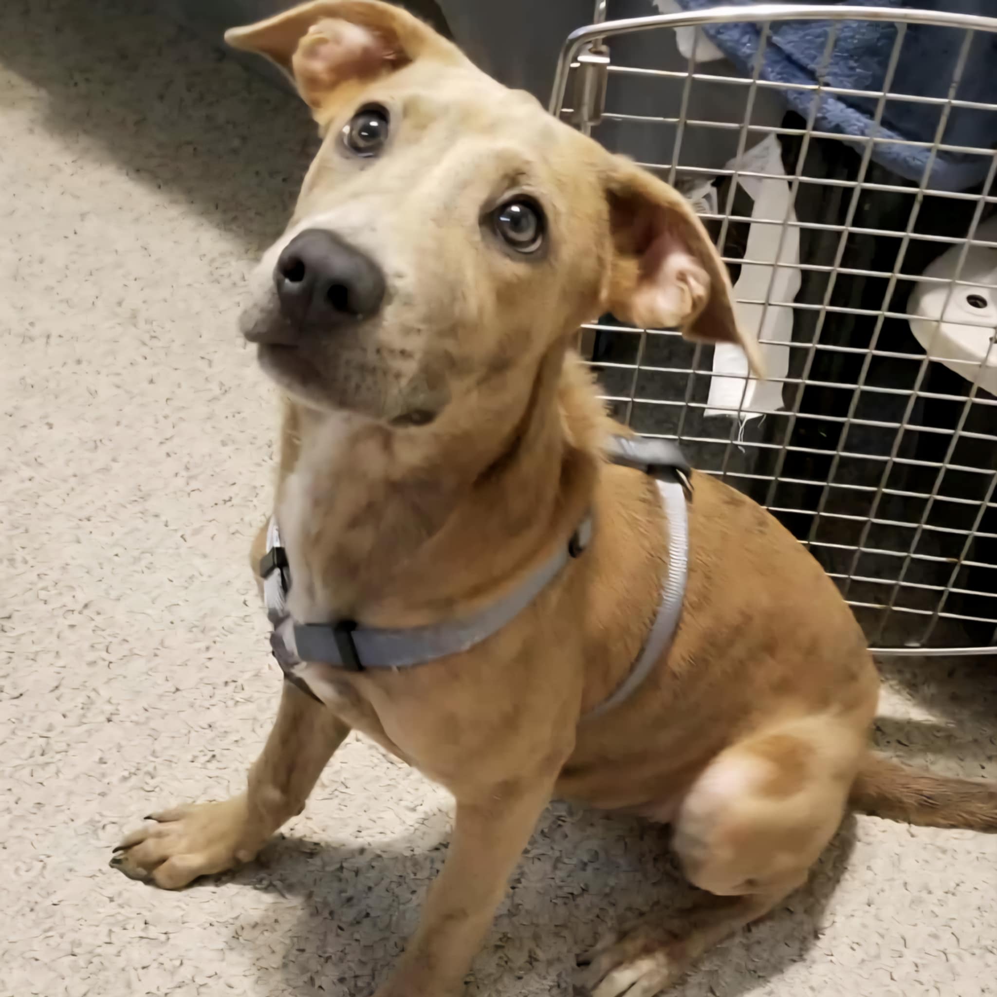 Cinnamon is a gorgeous 5-month-old pup with a sweet and gentle spirit. Weighing around 20 pounds, she has stunning brindle stripes and is a true beauty inside and out.
