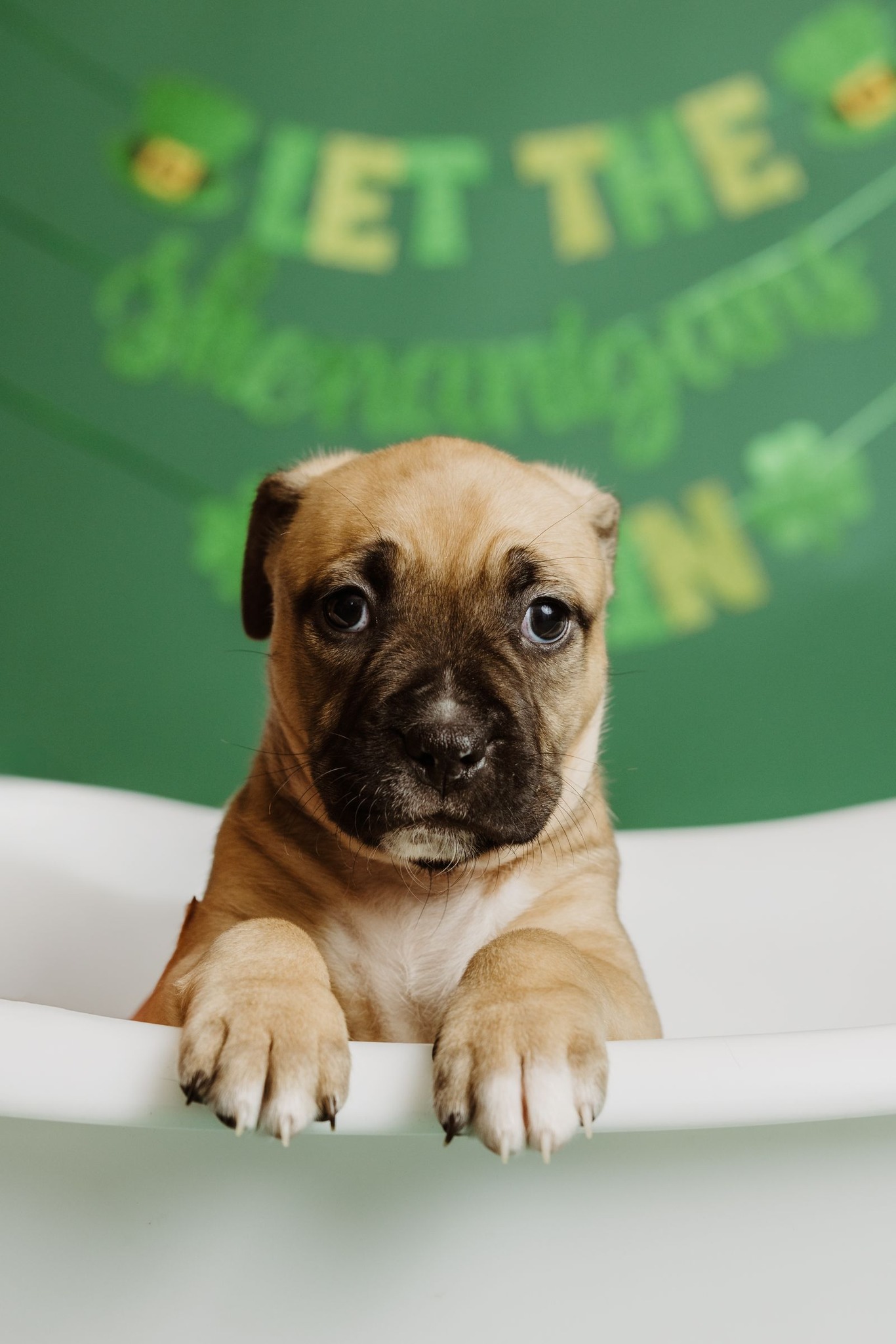 This St. Patrick’s Day, luck smiled upon not just one, but four precious pups! Born to the sweet and lucky Finley, these four bundles of joy, collectively known as “The Lucky Litter,” are now thriving at Mikaela’s Mutt Motel, preparing for their own adventures.