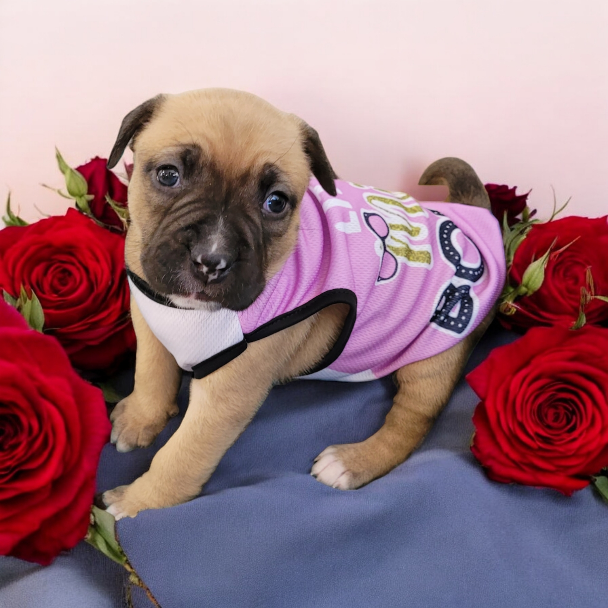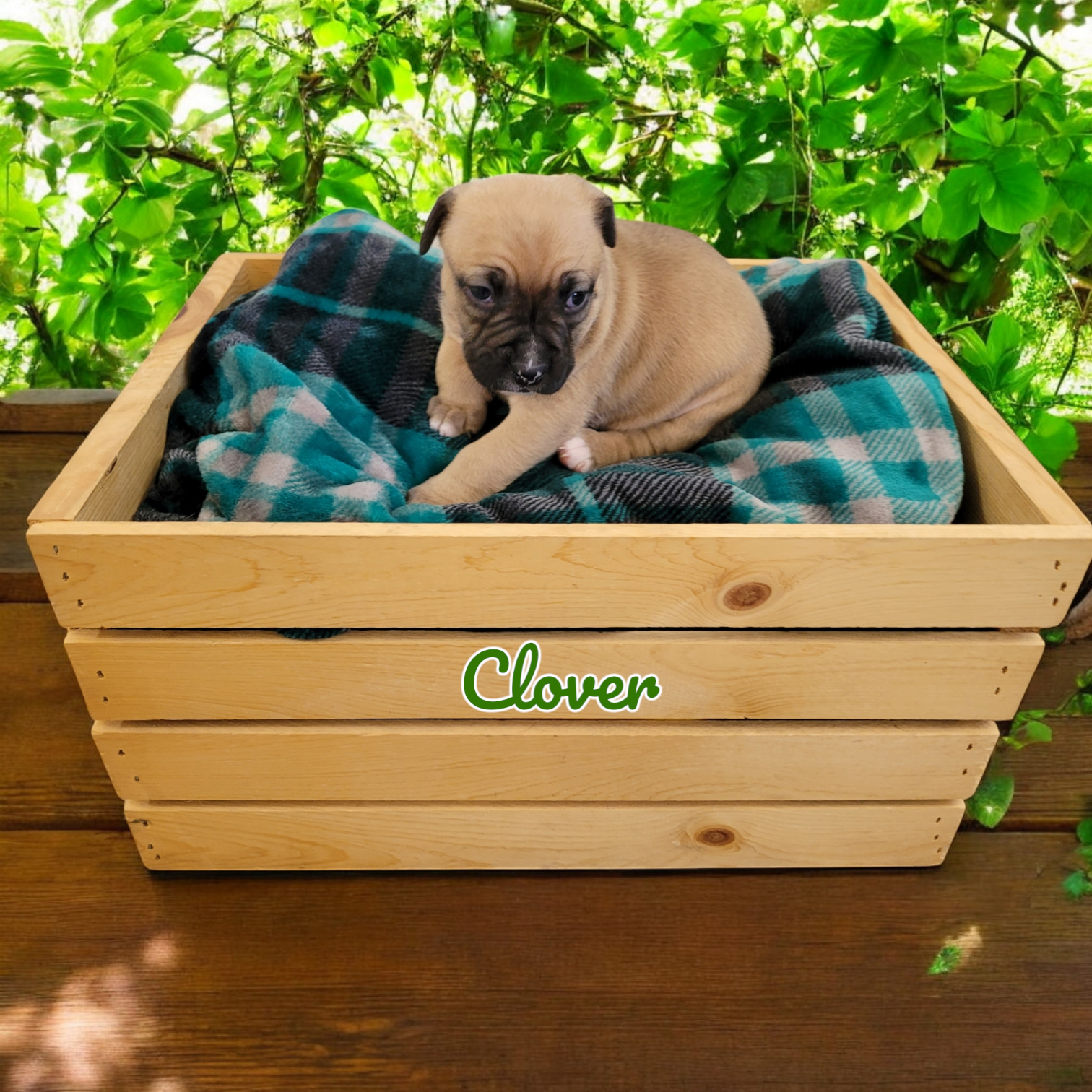 [adoption_info name=”Clover” breed=”Mutt” gender=”Female” age=”10 weeks” weight=”Growing Pup” color=”Fawn w/White” house=”No” crate=”No” dogs=”Puppy” cats=”Puppy” kids=”Puppy” fence=”Yes”]