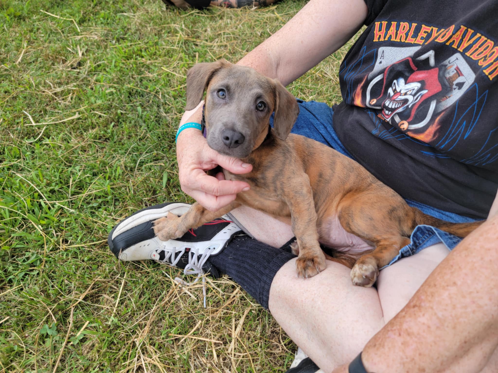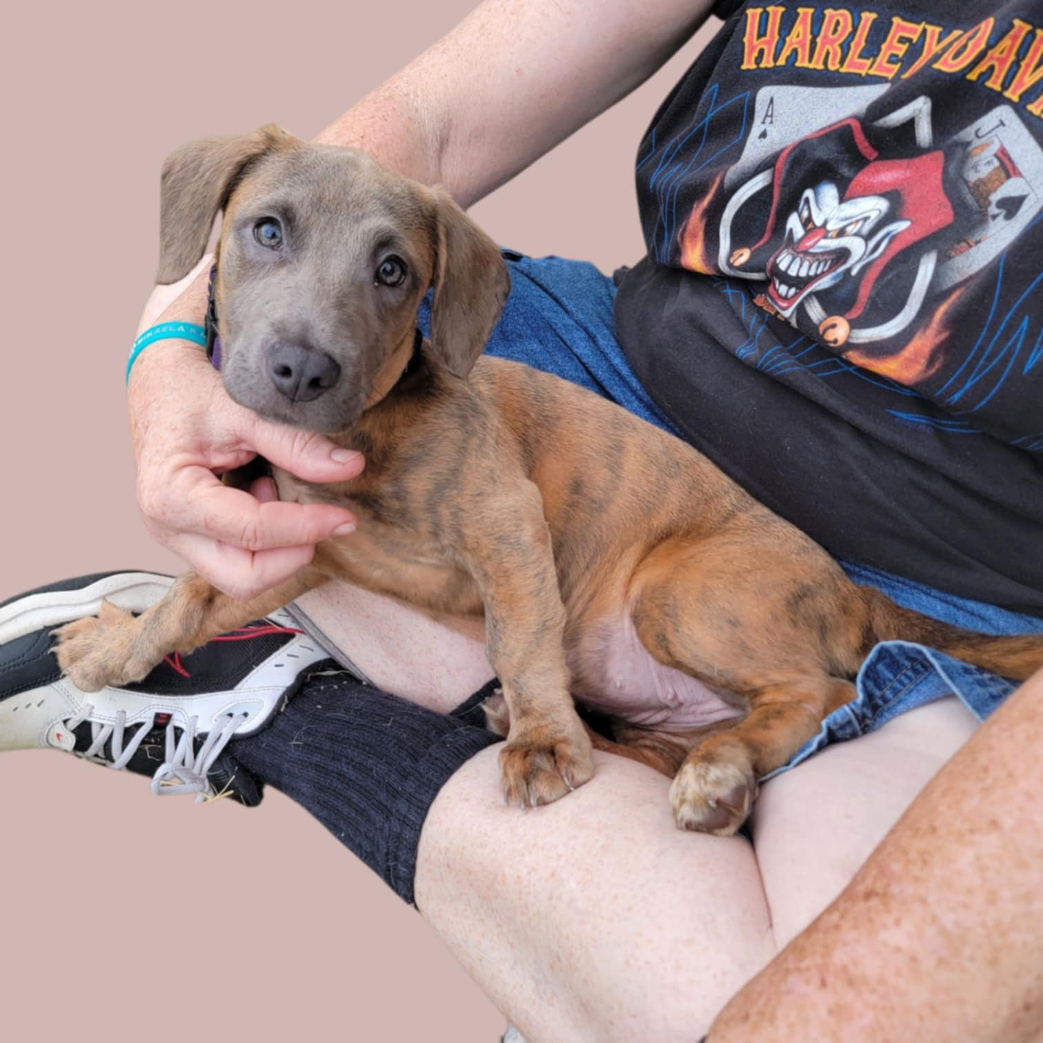 Get ready to fall in love with Cocoa, another precious pup from our special Baker’s Dozen! This adorable little girl, who weighed 15 pounds on July 15th, will melt your heart with her irresistibly cute stubby legs and stunning brindle coat.