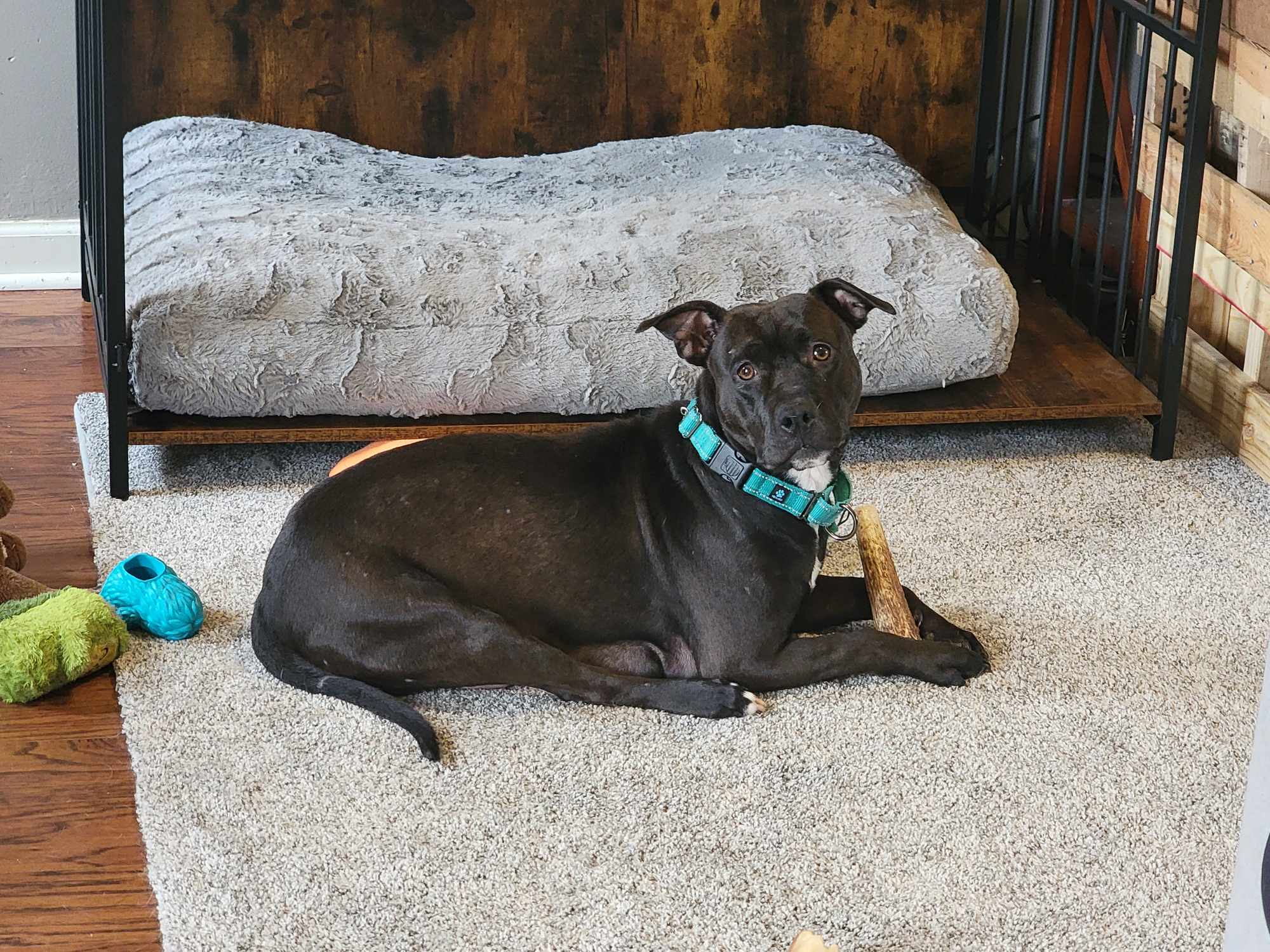 Finley herself is a true treasure. This young lady is as sweet as pie and loves to cuddle. She’s already house-trained and crate-trained, making her a breeze to integrate into any home.