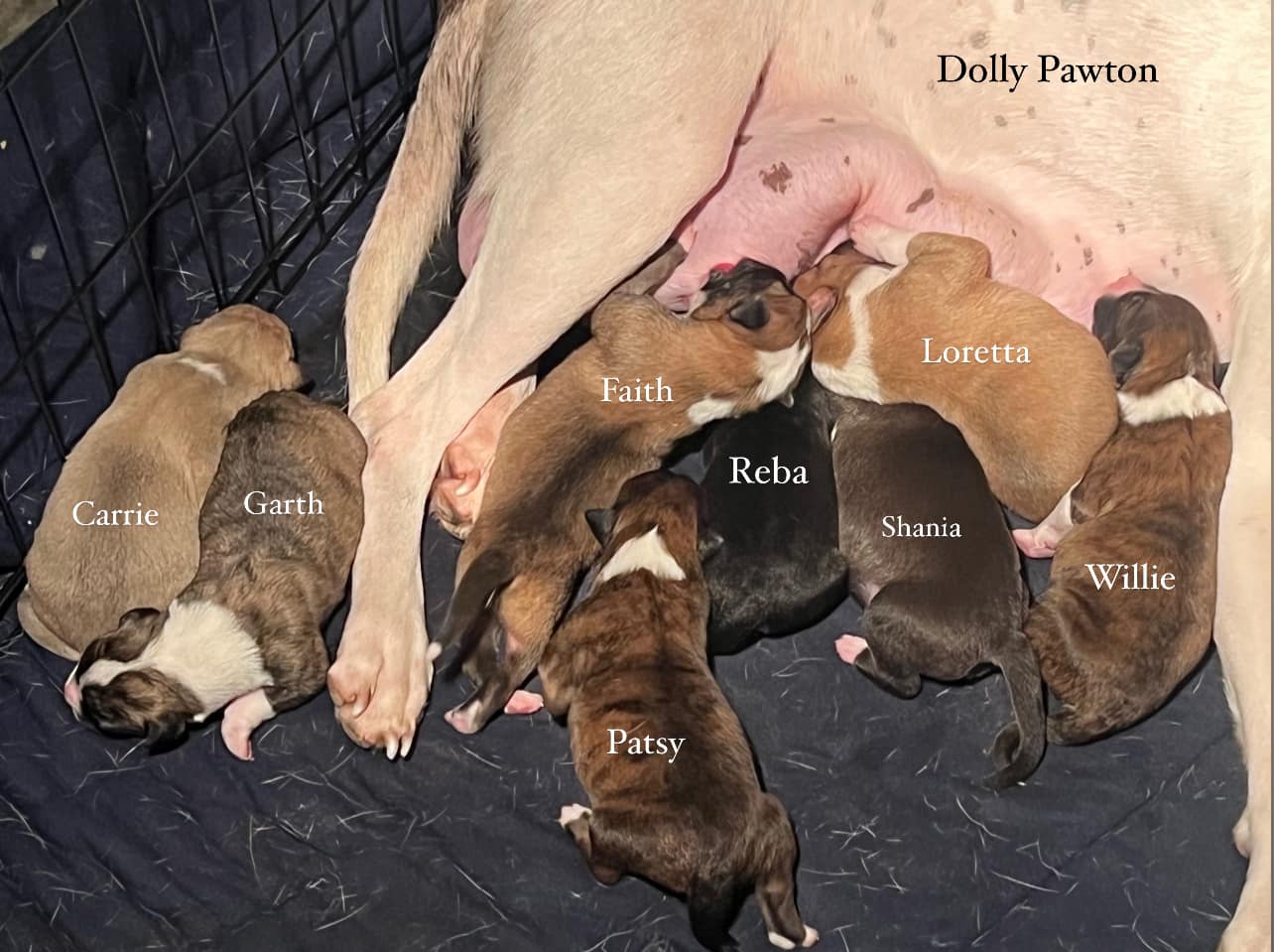 Y’all, these little pups are the cutest things since sliced biscuits! They’re a litter of pure southern charm, born and raised right here in our little neck of the woods. Their momma, the lovely Dolly Pawton, was found all alone and pregnant, but she’s found her forever home now.