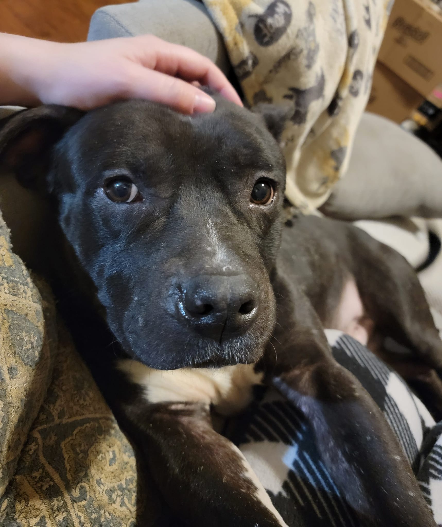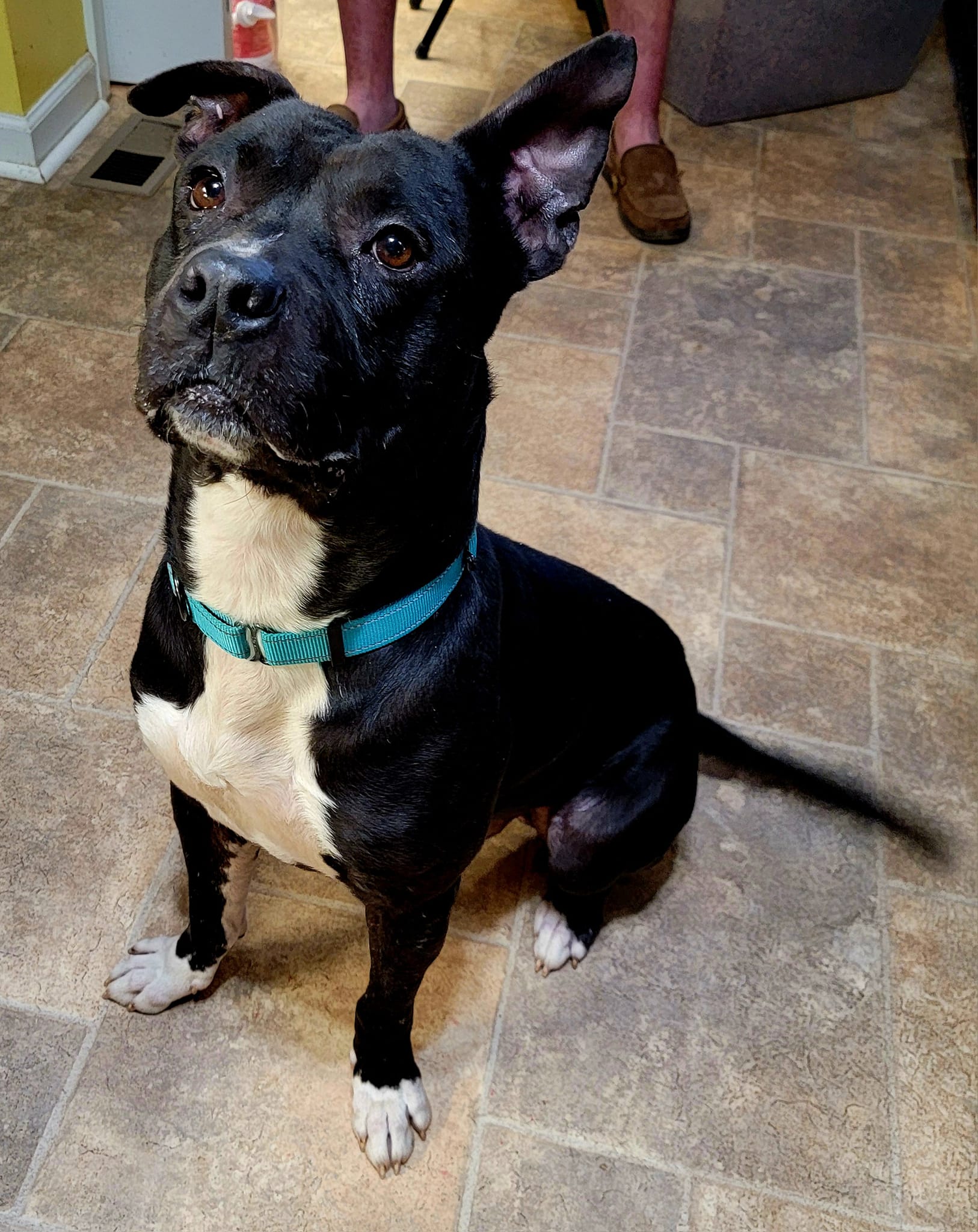 [adoption_info name=”Gus” breed=”Pitbull” gender=”Male” age=”5 years” weight=”70 pounds” color=”Black w/ White” house=”Yes” crate=”Heavy Duty Req’d” dogs=”Has done well” cats=”Unknown” kids=”Has done well” fence=”No”]