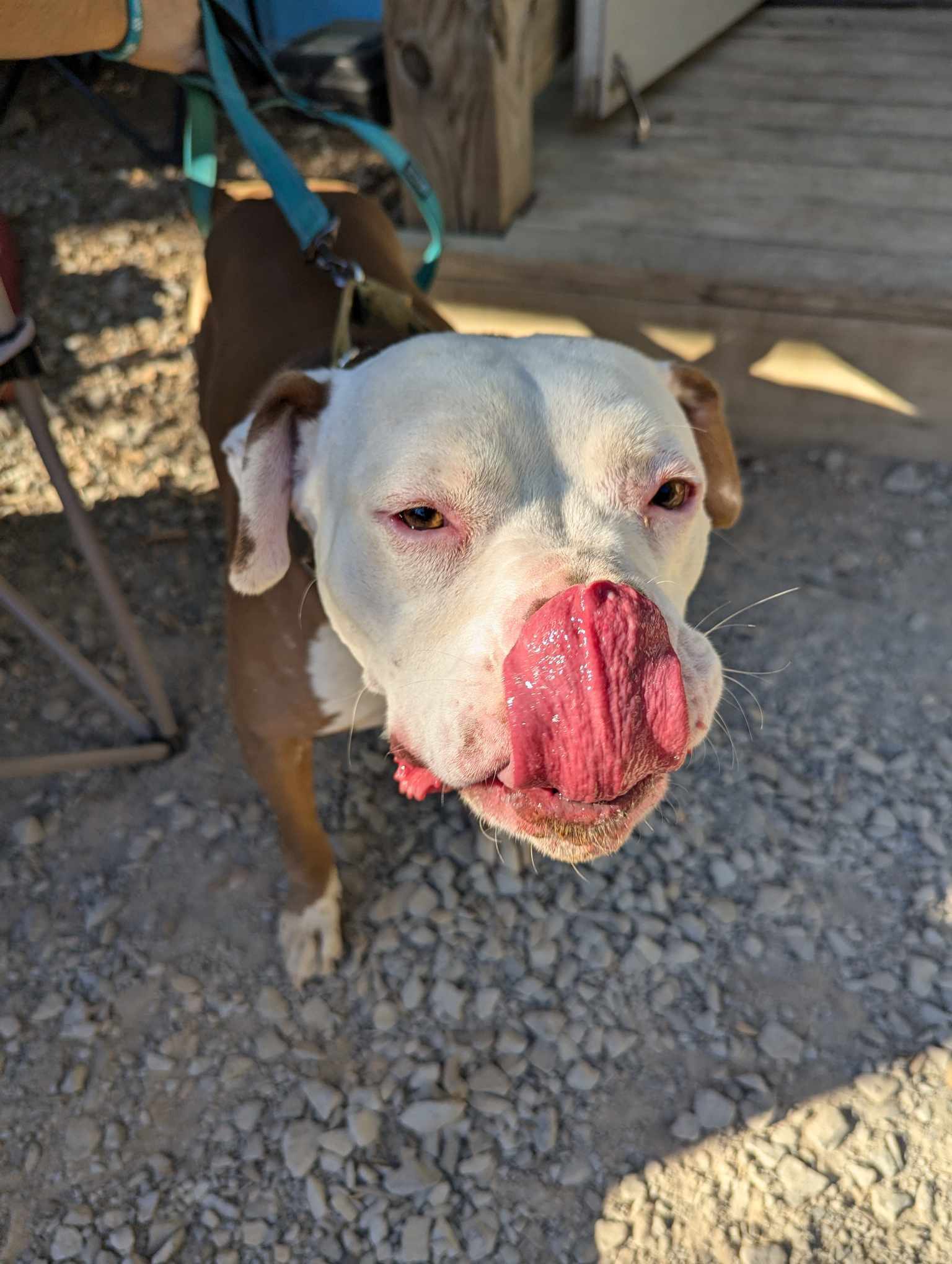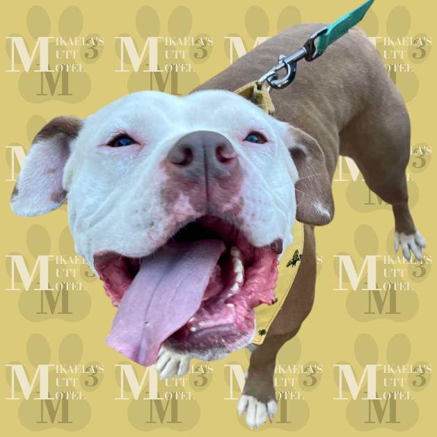 Honey is a 3-year-old American Bull Dog mix that was a stray who was attacked by a group of other dogs. Based on her injuries and scars, it appears she was used a bait-dog for a dog fighting ring. Although she has had a rough life thus far, she is incredibly sweet and loving.