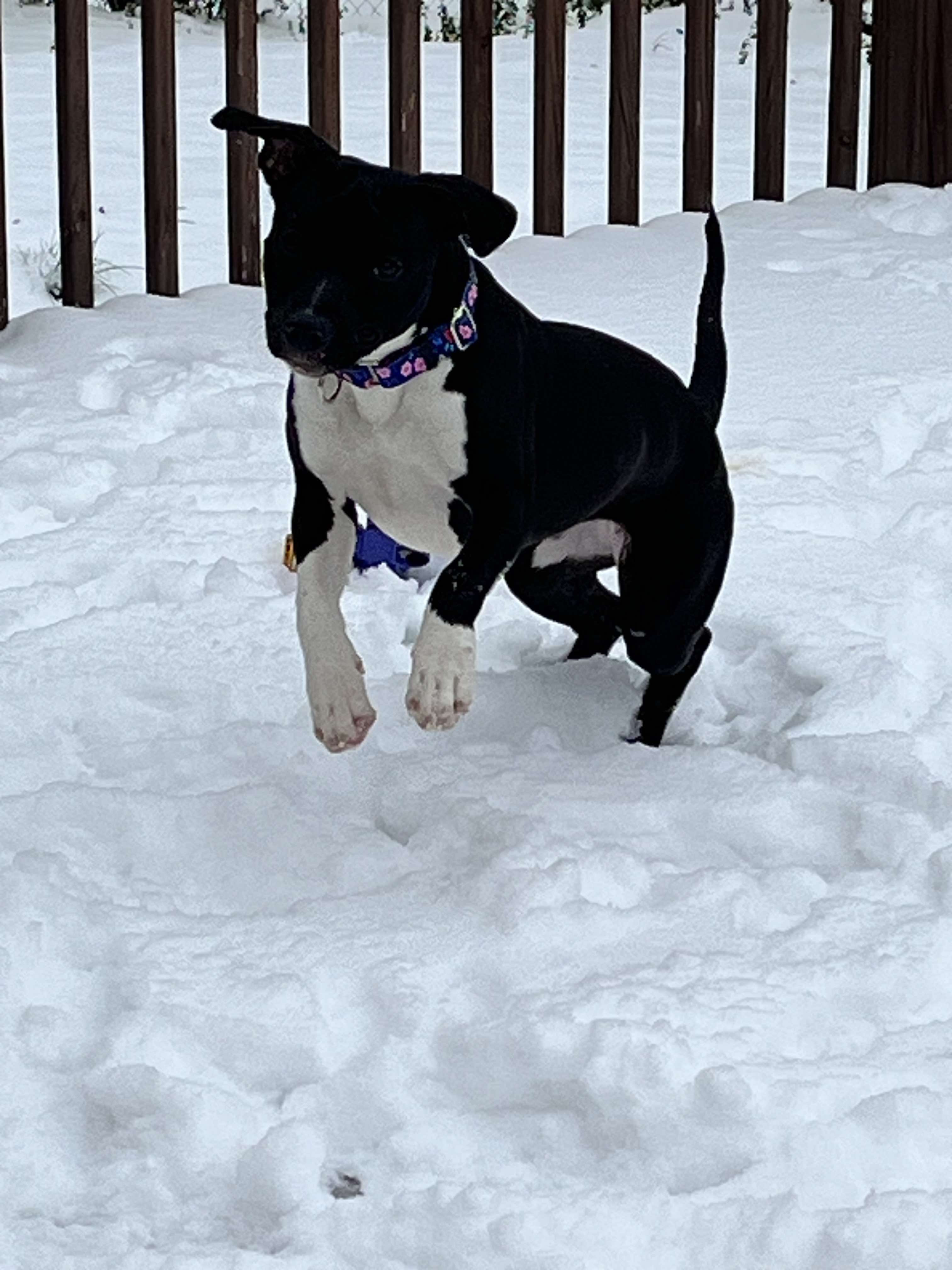 Indy truly appreciates any and all love she receives! Her tail wags furiously at the sight of a friendly face, and she’s always up for a playful romp in the yard.