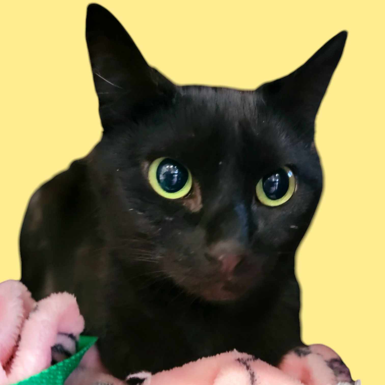 Magic Murder Mittens is the ultimate social butterfly. She gets along with everyone – dogs, cats, kids, you name it! She’s litter-box trained and has impeccable manners. Her hobbies include chasing imaginary mice, napping in sunbeams, and giving the best head boops in town.