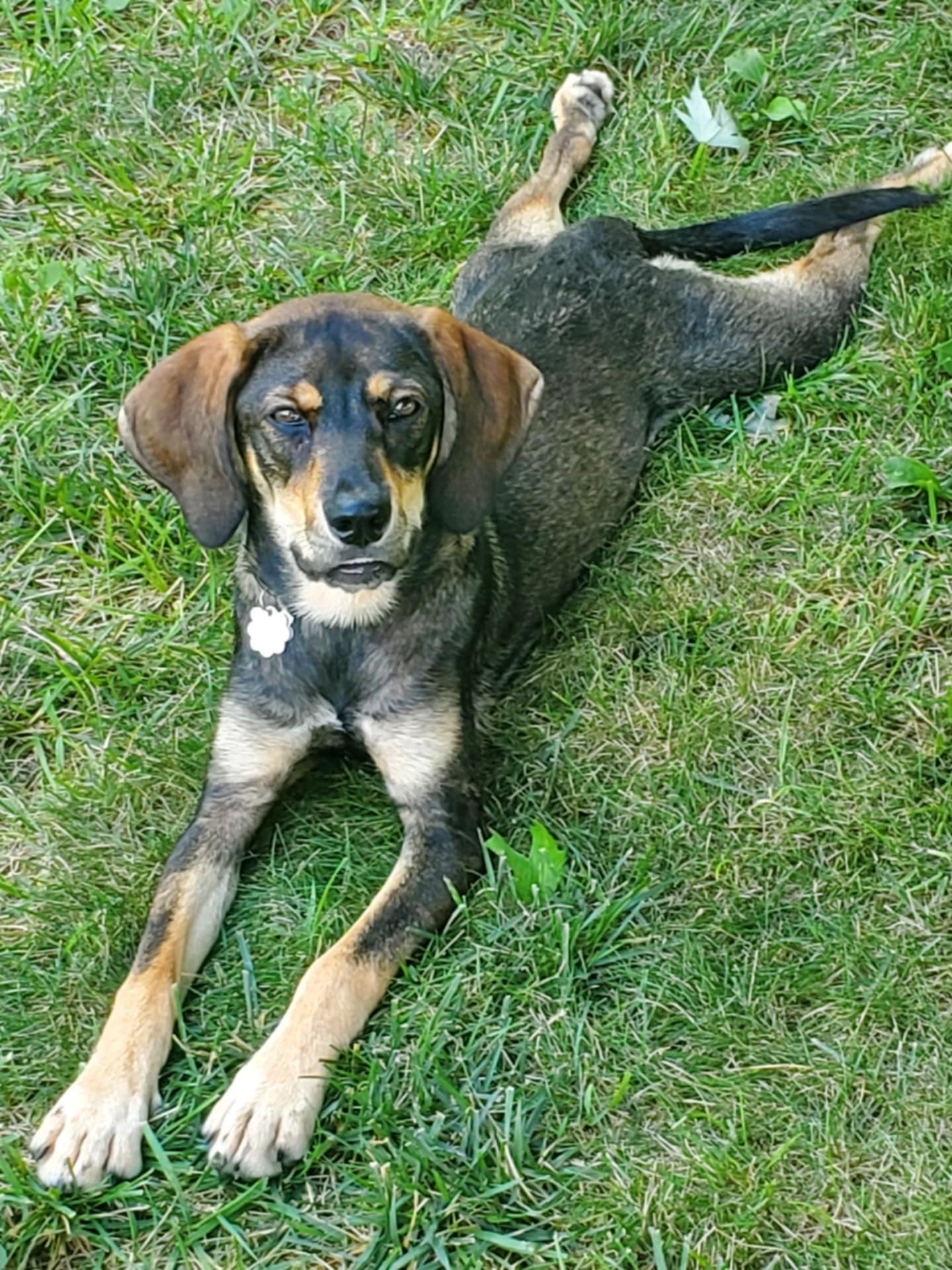 [adoption_info name=”Maisy” breed=”Mutt” gender=”Female” age=”6 months” weight=”~40 lb” color=”Tricolor” house=”Mostly” crate=”Yes” dogs=”Has done well” cats=”Has done well” kids=”Has done well” fence=”No”]