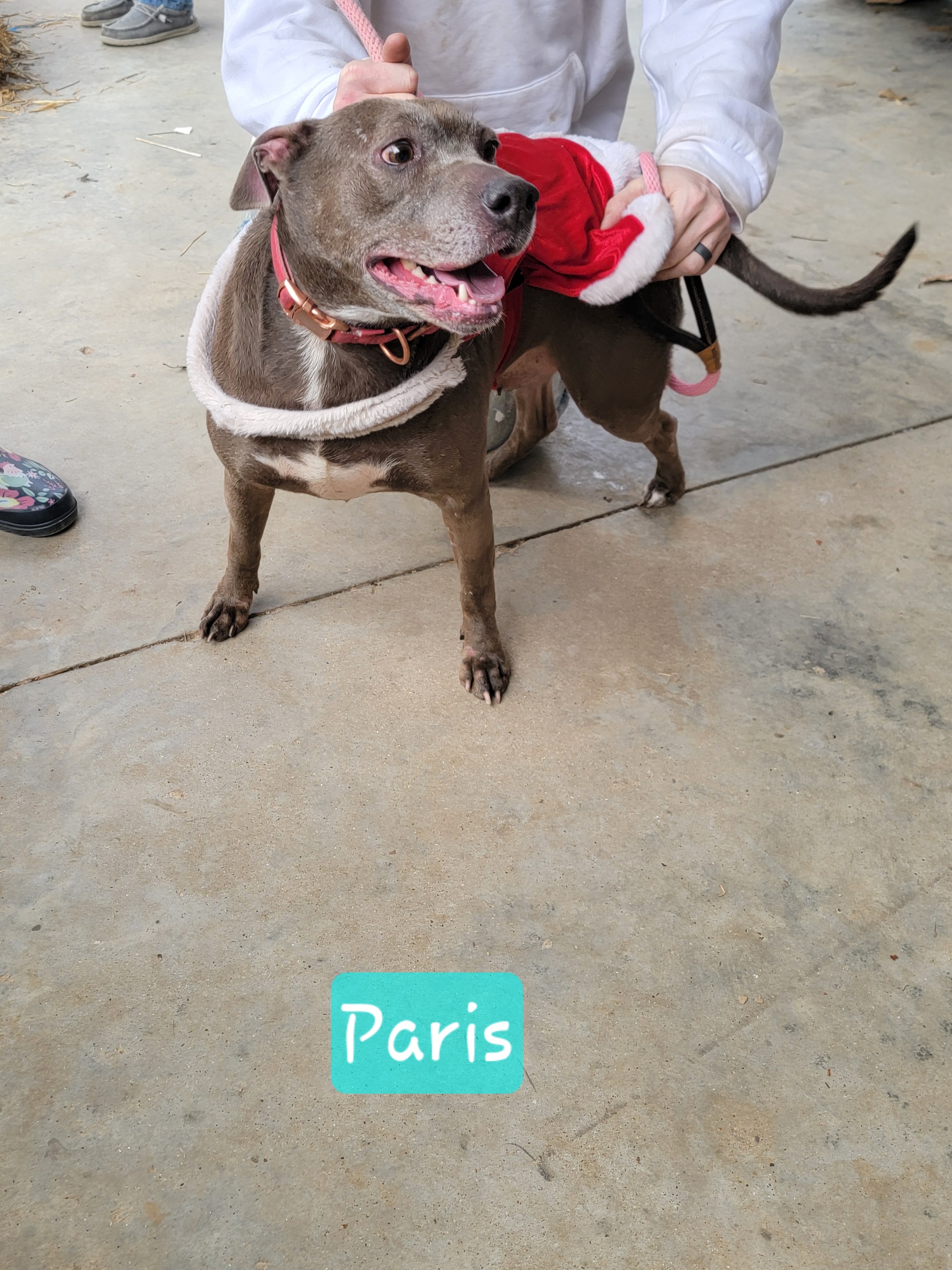 [adoption_info name=”Paris” breed=”Mutt” gender=”Female” age=”8 years” weight=”40 pounds” color=”Blue w/ White” house=”Yes” crate=”Yes” dogs=”No” cats=”Unknown” kids=”Has Done Well” fence=”No”]