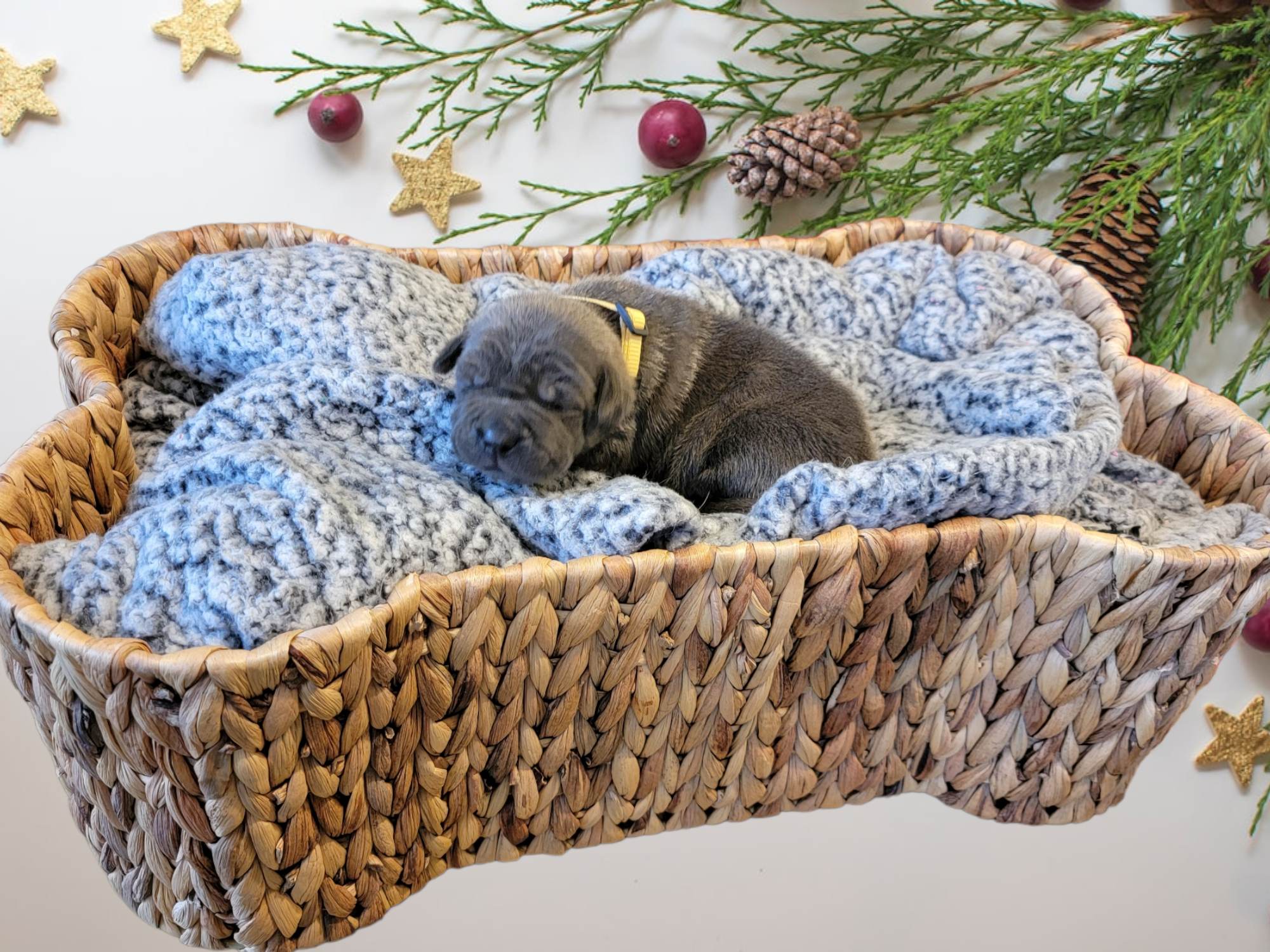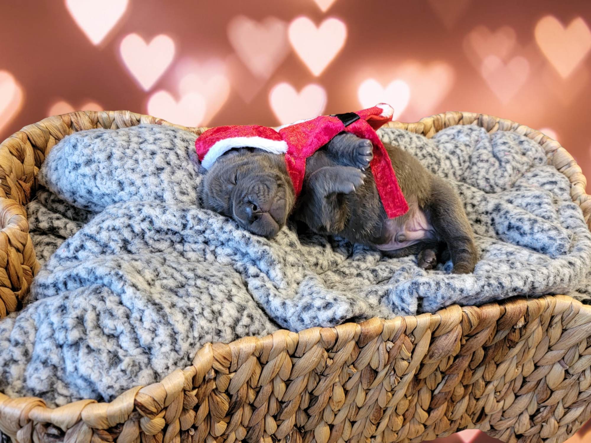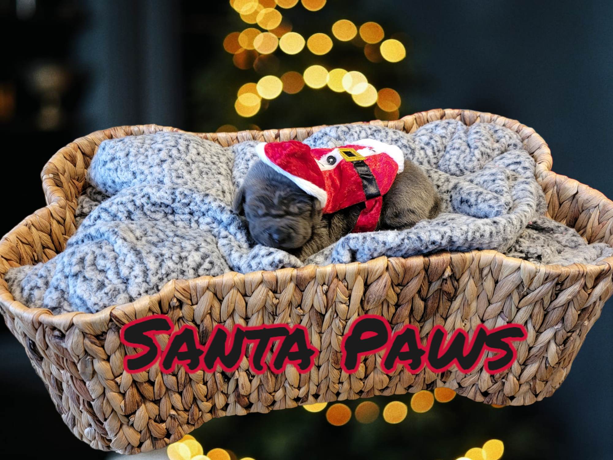 Santa Paws is a puppy that will be available for adoption at 8 weeks old (approximately January 21, 2023). He is a Pit Mix puppy and can’t wait to spoiled rotten by his new forever family.