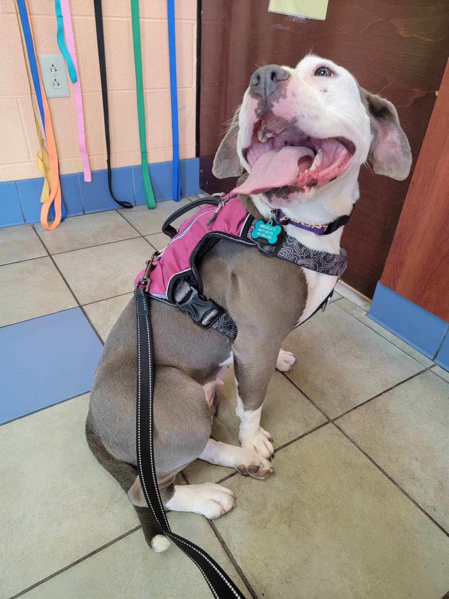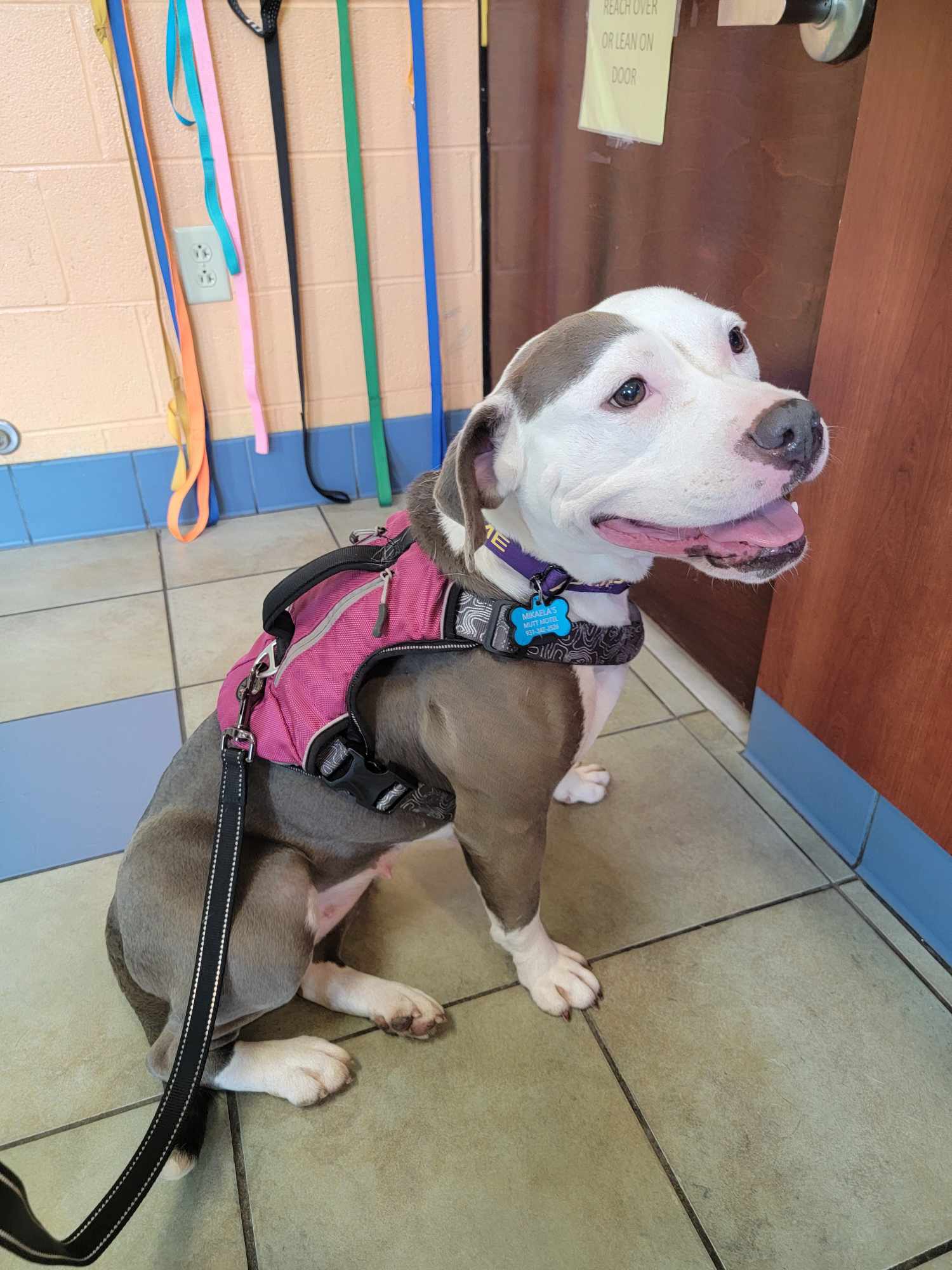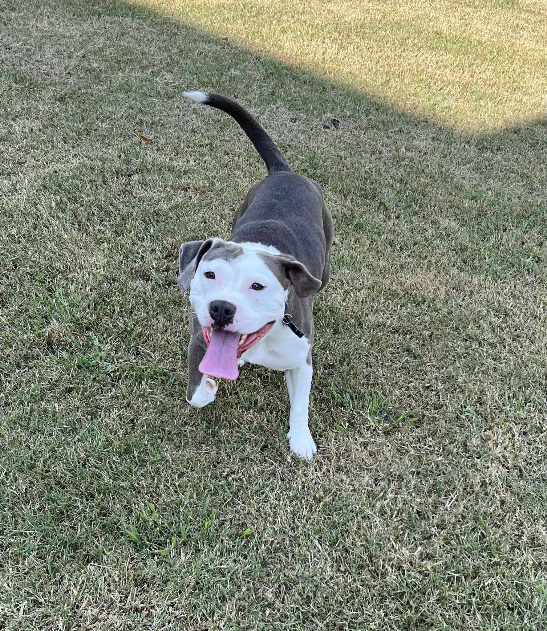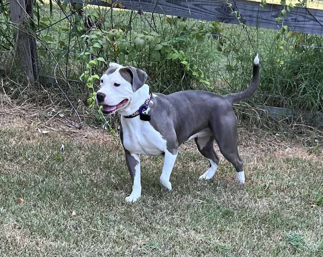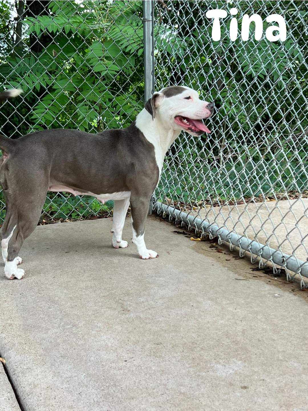 [adoption_info name=”Tina” breed=”Mutt” gender=”Female” age=”3 years” weight=”40 pounds” color=”Gray w/white” house=”Yes” crate=”Yes” dogs=”Has done well” cats=”Has done well” kids=”Has done well” fence=”Yes”]