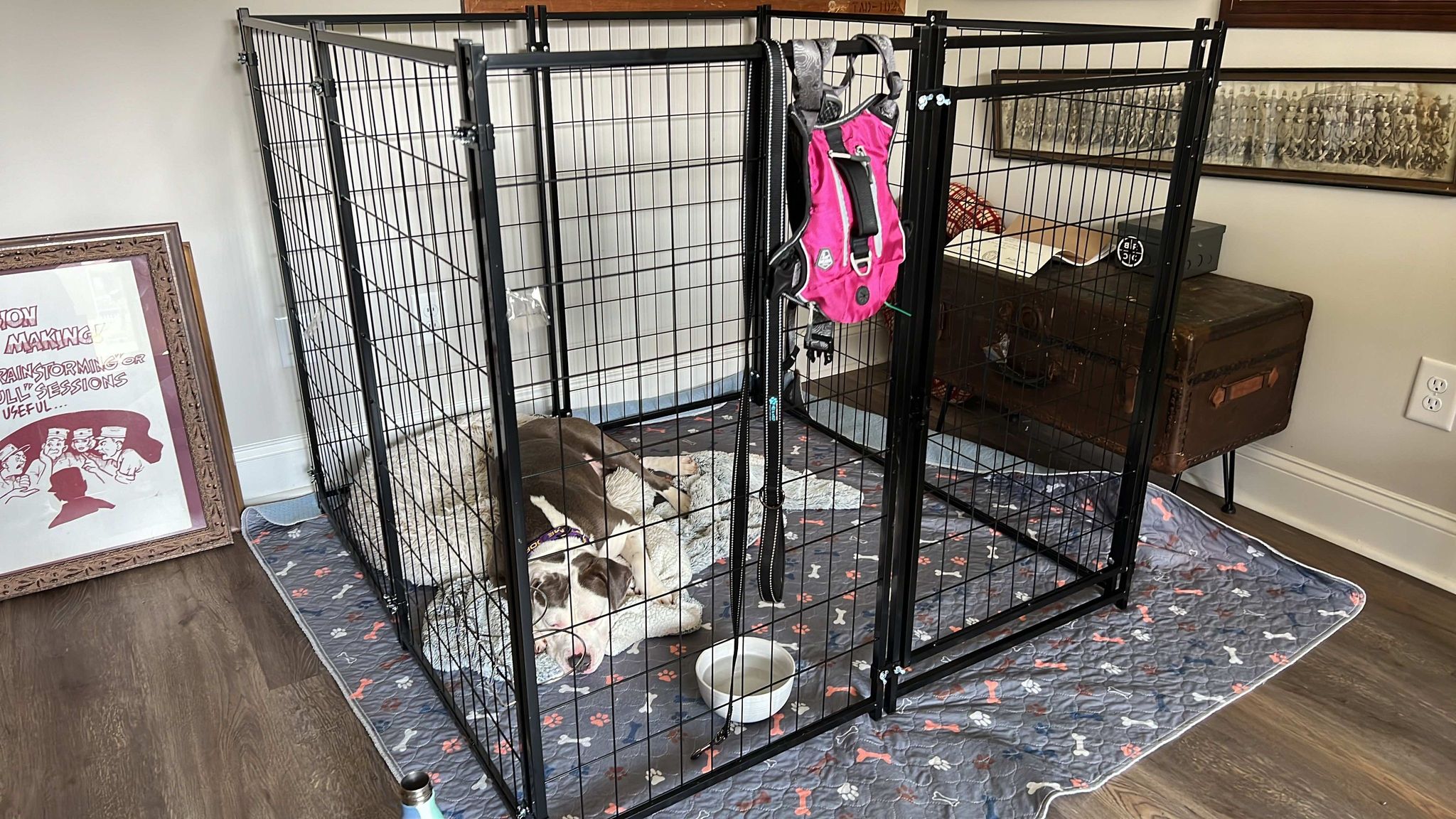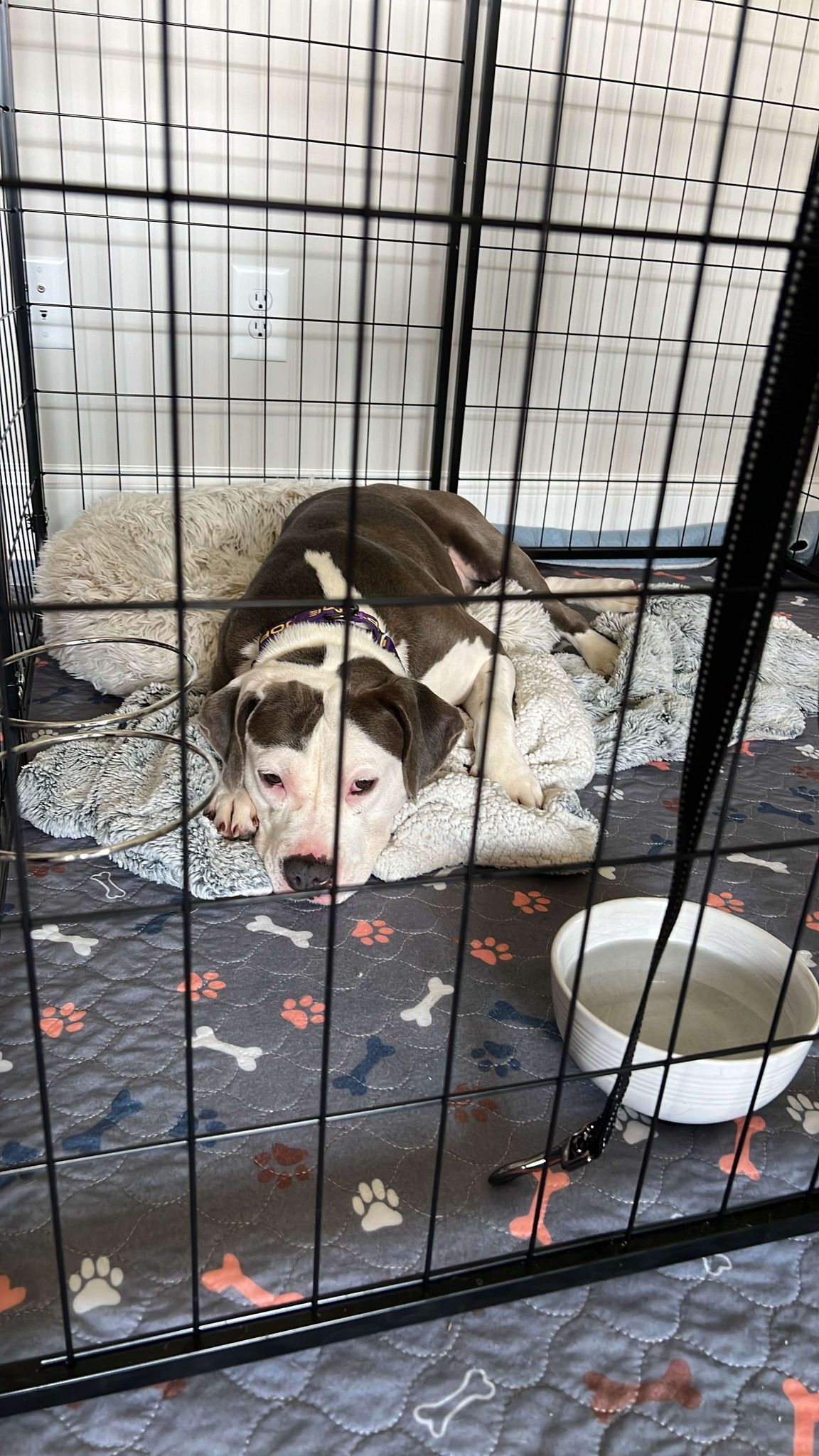 She seems to be house-trained and crate-trained. We are currently working on basic commands while she undergoes heartworm treatment in preparation for adoption. She is a sweet girl who loves to cuddle! She currently weighs about 40 pounds!
