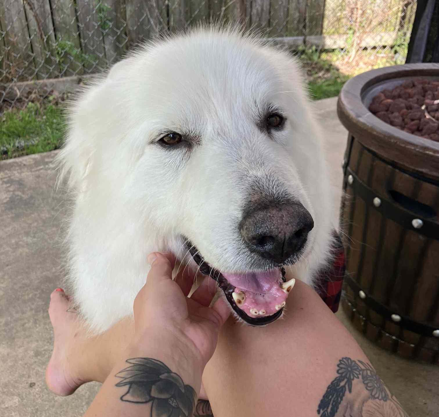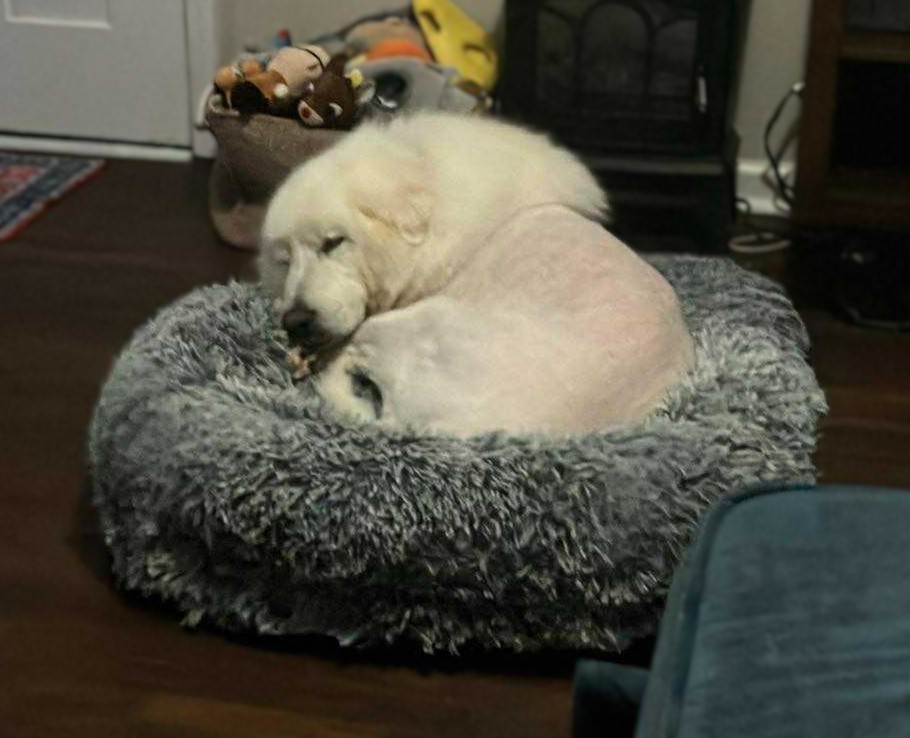 Yeti, our gentle giant, sadly crossed the Rainbow Bridge. This absolutely adorable big guy was around 85 pounds and had a heart to match his size. He was a gentle giant who loved everyone!